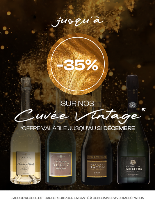 Jusqu’au 31 décembre, profitez de remises allant jusqu’à –35 % sur une sélection de champagnes vintage.